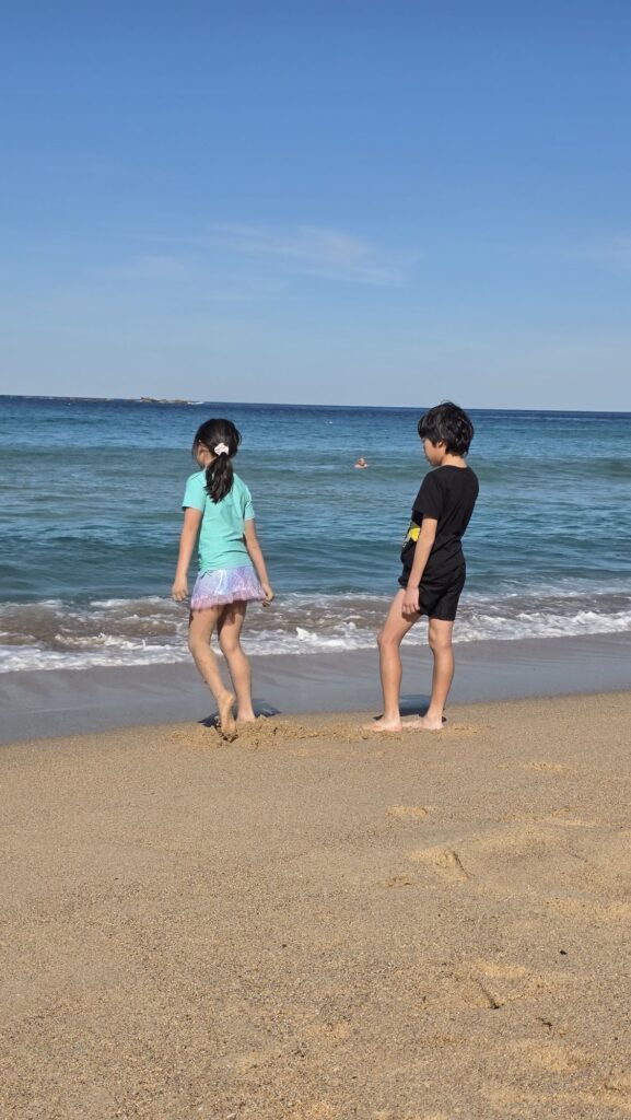 We wandered along the rocks first, watching waves crash and sparkle, stopping every two minutes because someone spotted “the perfect rock” or a funny-looking crab. The air smelled like salt and sunscreen — that perfect mix that instantly says summer’s almost here.