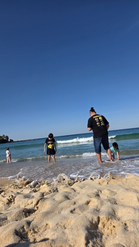 Nothing beats a lazy afternoon walk down Coogee Beach with the family. The sun was out, the sky was ridiculously blue, and the water looked way too inviting to just look at — so of course, the kids went straight in, shoes and all.